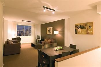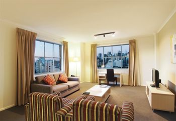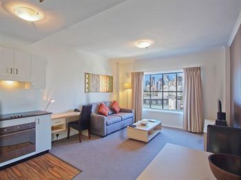 Ideally located on Sydney’s Darling Harbour is the dazzling Oaks Golsbrough Apartments, you’re classy base to explore the activities of Central Sydney. Guests will relish the quality and elegant furnishings of the apartment interiors. Your choice of accommodation styles includes the Studio, One Bedroom Apartment and One Bedroom Harbour. Inside the contemporary hotel there’s a myriad of quality features and services. Enjoying some time out doesn’t get any better than some paddling in the on-site pool, or finding peace in the bubbling spa. You’re connection to the outside world has an exclusive touch, with a walkway leading to the Convention and Exhibition Centre. All apartments provide the accessibility to full laundry facilities to make a long stay comfortable. Only 30 minutes from the Sydney Airport, the Oaks Goldsbrough Apartments is a perfect choice.